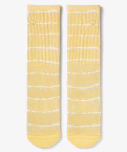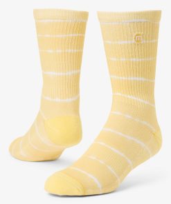 With an ultra-cushioned sole and no-slip cuff, the SUNBEAM CREW sock delivers support and breathability, finished with a horizontal stripe pattern on a warm seasonal hue inspired by sunshine.
