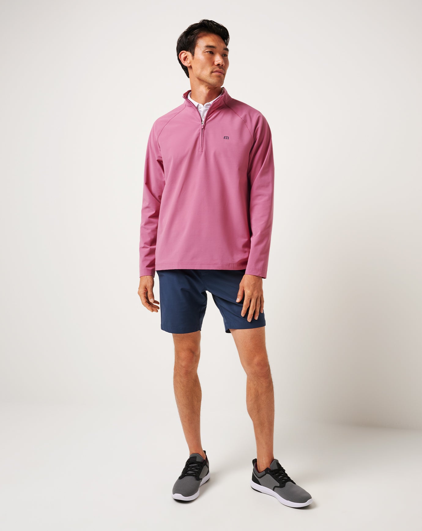 - Printed TravisMathew stacked logo on back yoke