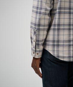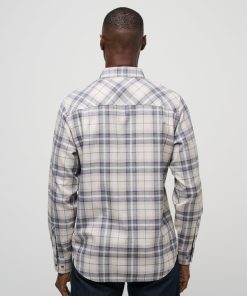 TravisMathew Men’s Tops Cloud Flannel Plaid Button-up | Oxford Tan & Plum
