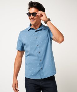 Reliability is underrated. The PER ASPERA button-up is one of those staple pieces you’ll reach for over and over. With a geo print on a cotton woven spandex blend…it feels as good as it looks.